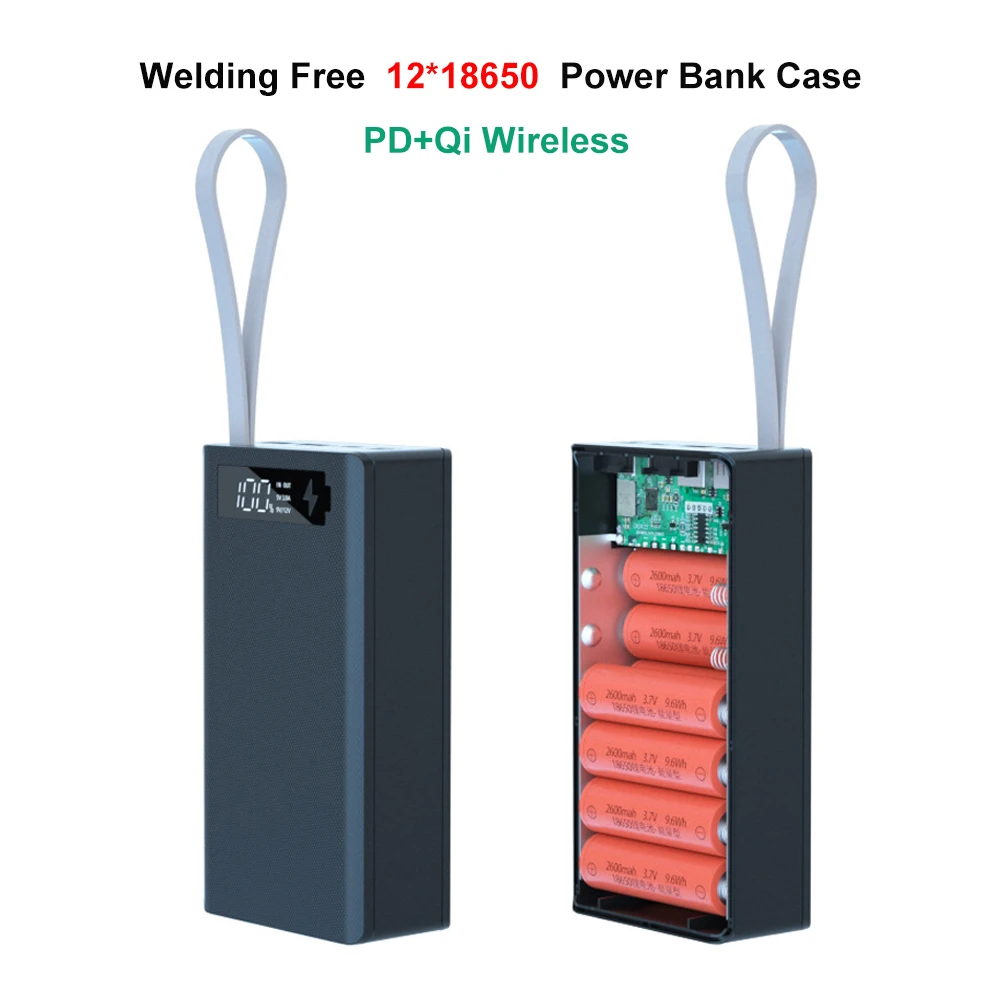 Best Chance for Welding Free 12x 18650 Battery Case Qi Wireless Power Bank Case PD Fast Charging 18650 Battery Storage Box for iPhone Xiaomi