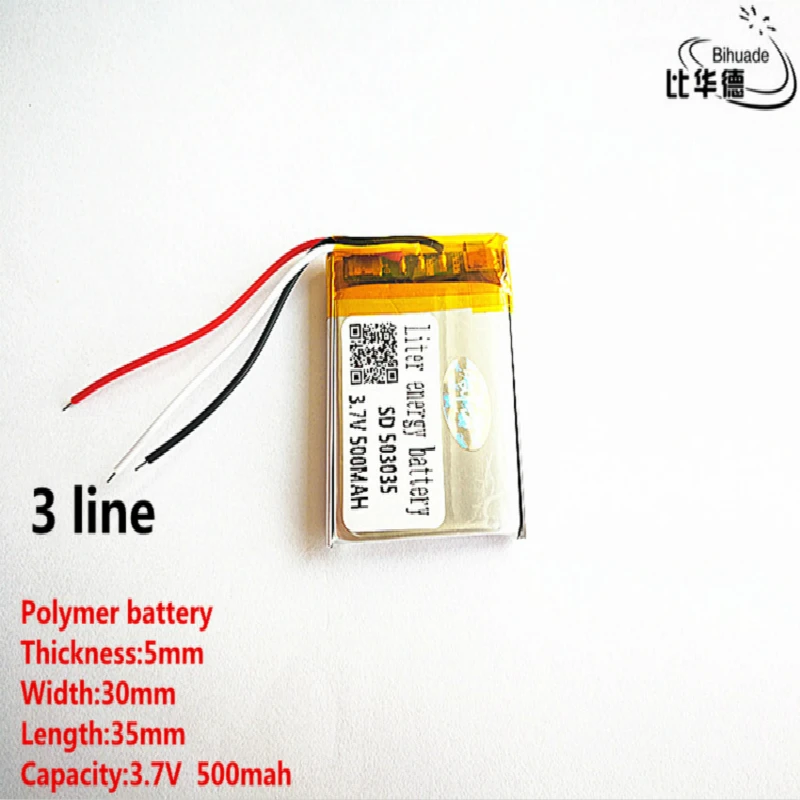 5pcs/lot 3 line Good Qulity 3.7V,500mAH,503035 Polymer lithium ion / Li-ion battery for TOY,POWER BANK,GPS,mp3,mp4