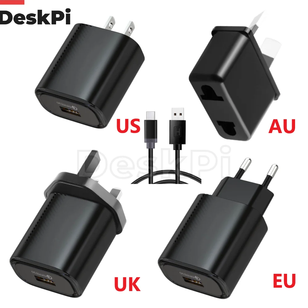 Deskpi Pro USB Charger Adapter AC 100-240V 0.5A-12V 3.6Power Supply Wall Desktop Charging Power Bank EU/US/UK/AU Type C Cable